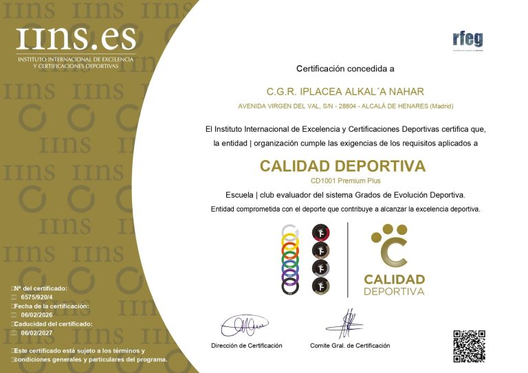 Sello Premium plus de calidad deportiva concedido por el instituto internacional de excelencia y certificaciones deportivas..